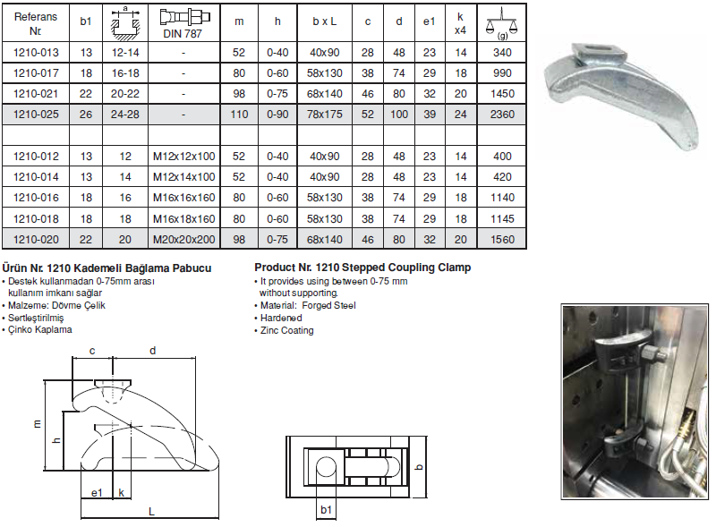Ayarlanabilir Destek Civatalı Kombine Bağlama “Z” Pabuç